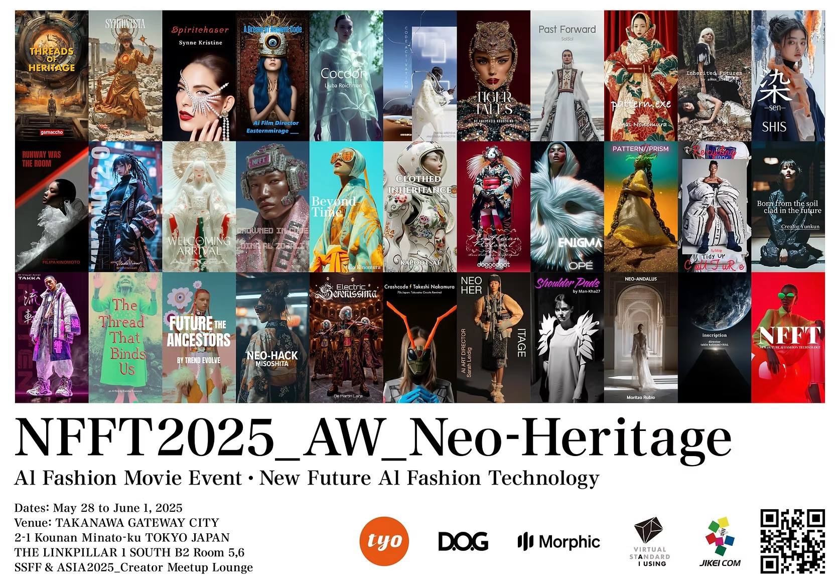NFFT2025_AW AI Fashion Movie is part of the ongoing New Future AI Fashion Technology (NFFT)initiative launched in 2022 by STUDIO D.O.G GK. Now in its ninth edition, the event brings together 32 AI creators—comprising AI Prompt Directors and AI Filmmakers—from around the globe to present their latest original AI-generated fashion films.